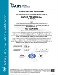 Certificado ISO 9001.2015 – MARCO PERUANA S.A.