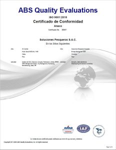 Certificado ISO 9001.2015 – SOLUCIONES PESQUERAS SAC